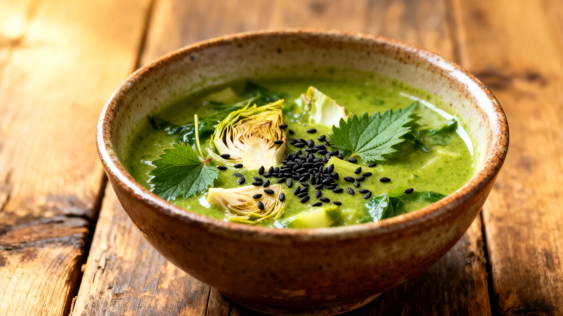 Wenn die Natur erwacht oder sich zur Ruhe begibt, spüren viele Menschen eine Schwere im Körper – als würde der Stoffwechsel im alten Rhythmus feststecken. Gerade nach stressigen Arbeitsphasen sehnt sich der Organismus nach Entlastung. Eine Löwenzahn-Artischocken-Suppe mit Brennnessel und Schwarzkümmel bietet genau diese Pause: ein kulinarisches Ritual, das Jahrhunderte altes Kräuterwissen mit modernen ernährungswissenschaftlichen Erkenntnissen verbindet. Die Kombination aus Bitterstoffen, Antioxidantien und Ballaststoffen macht diese Suppe zu einem nährstoffreichen Begleiter in Übergangszeiten.